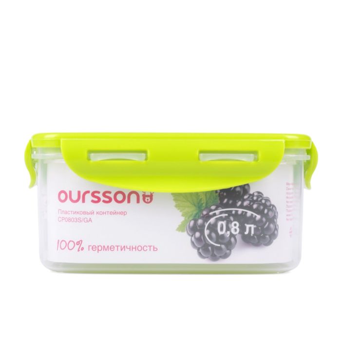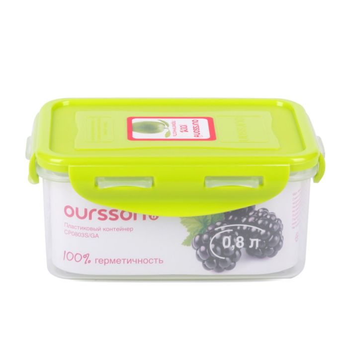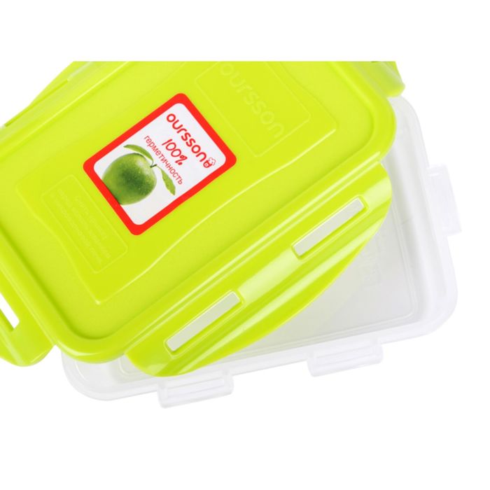 Пластиковый контейнер Oursson, салатовая крышка, 800 мл, прямоугольный