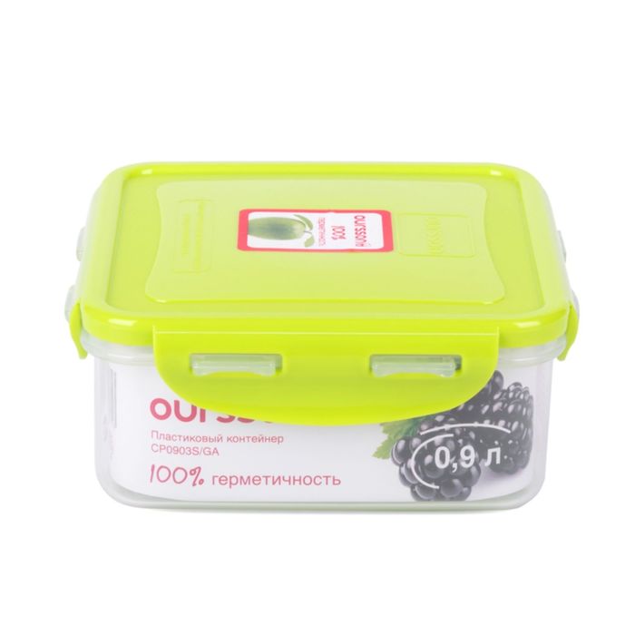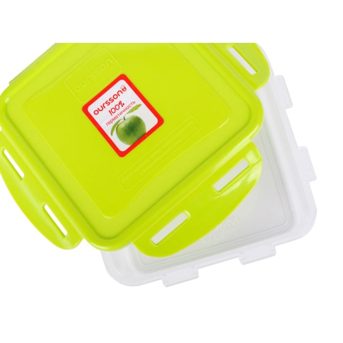 Пластиковый контейнер Oursson, салатовая крышка, 900 мл, квадратный