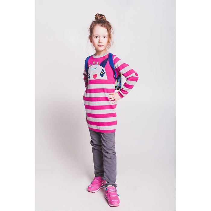 Платье для девочки, рост 92 см (52), цвет розовый/серый меланж