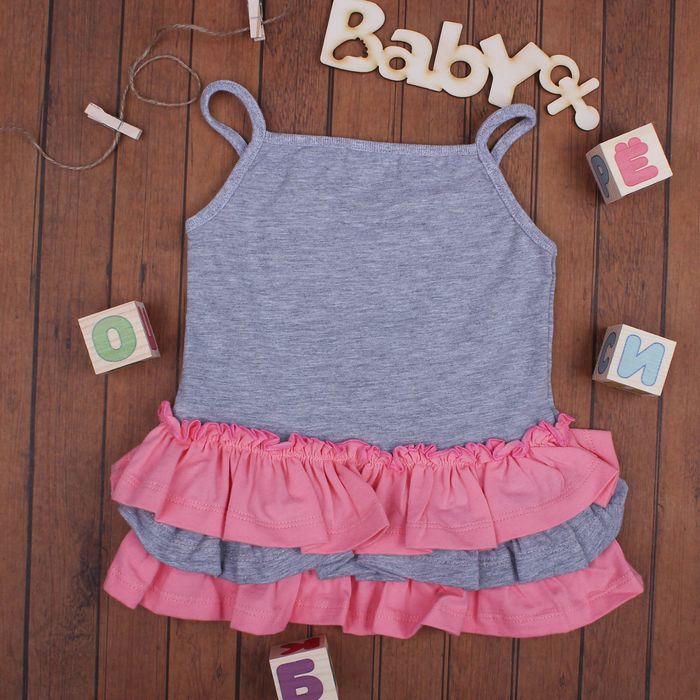 Платье для девочки, рост 92 см, цвет серый меланж/розовый