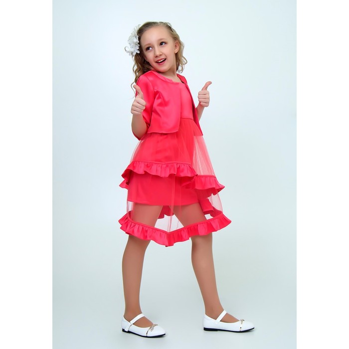 Платье нарядное+болеро для девочки, рост 134 см, цвет арбузный 2Н59-5