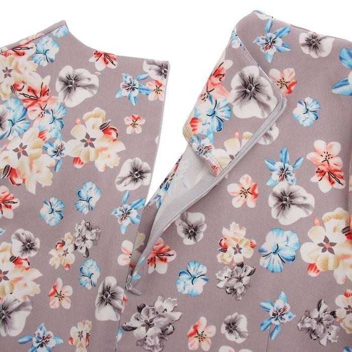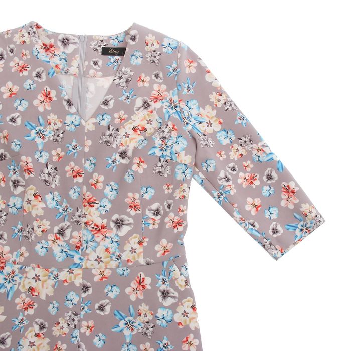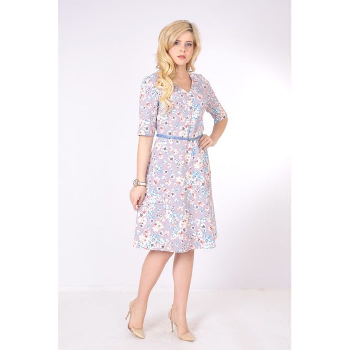Платье женское 1-177, цвет серый, принт цветы, рост 164 см, р-р 50
