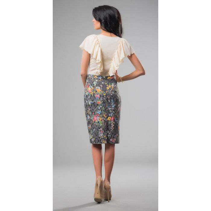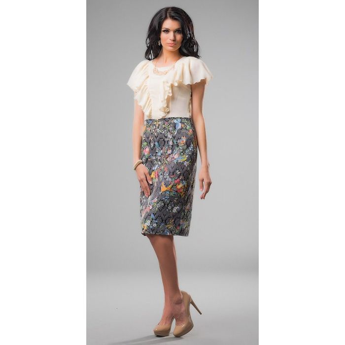 - изделие выполнено из нежного креп-шифона и фактурного жаккарда;