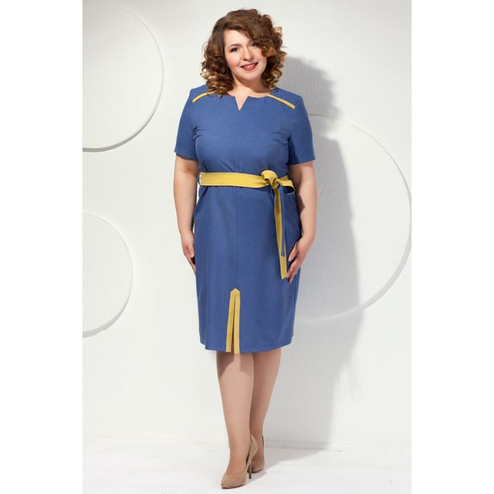 Платье женское, размер 58, цвет синий+горчичный П-465/2 — выбор стильных людей. Вещь изготовлена из качественных и безопасных материалов, а над дизайном работала команда настоящих профессионалов.