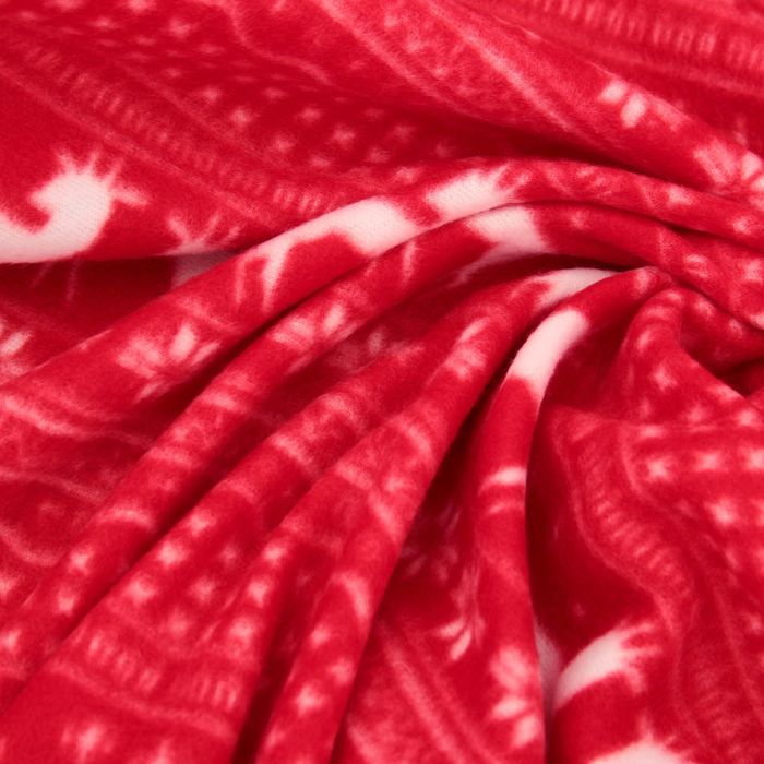 Плед изготовлен из нежного на ощупь флиса — синтетического трикотажного полотна, которое обладает массой приятных свойств. Благодаря им он: