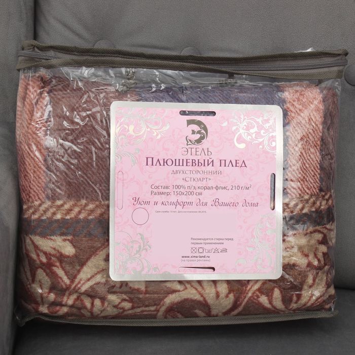 Плед "Этель корал" 2 сп. Стюарт 180х200 см, 100% п/э, корал-флис, двухсторонний 210 гр/м²