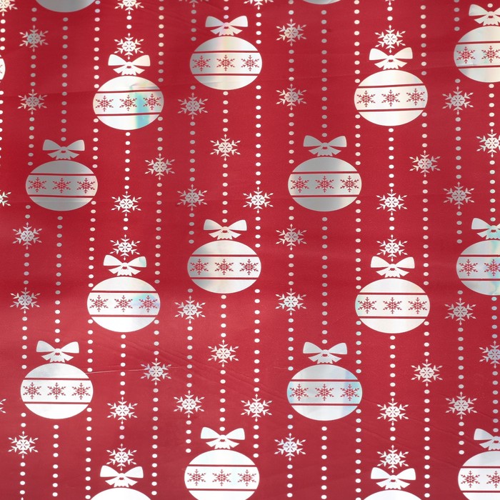 Пленка металлизированная "Новогодние шарики", красный, 50 х 70 см