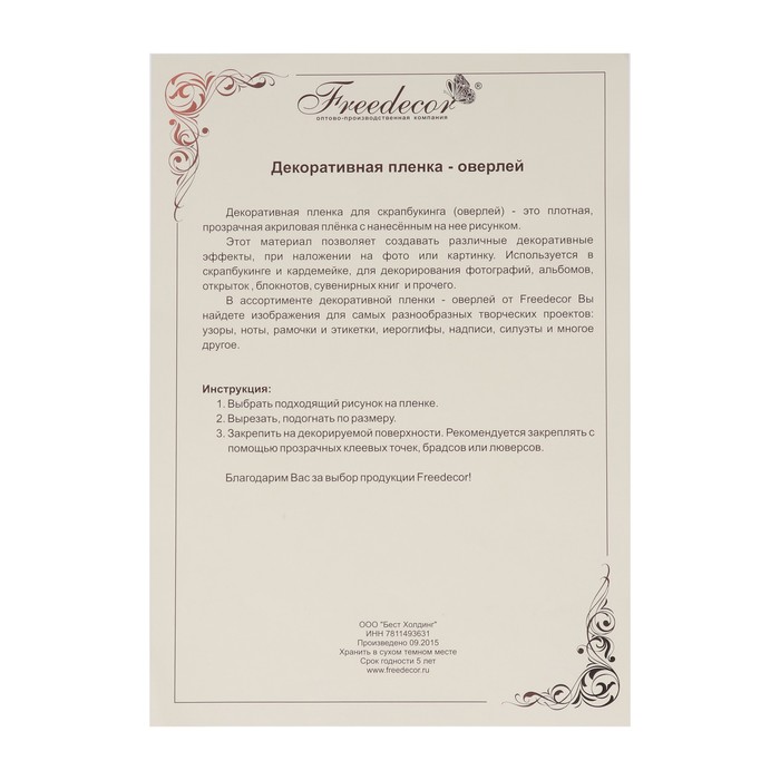 Пленка-оверлей для скрапбукинга "Цветочные узоры" формат А4
