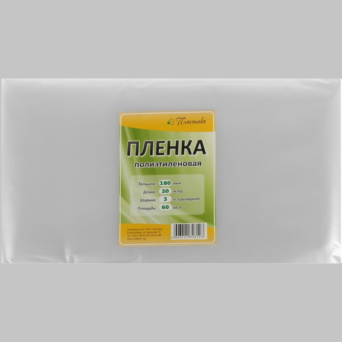 Плёнка полиэтиленовая, 20 х 3 м, толщина 180 мкм