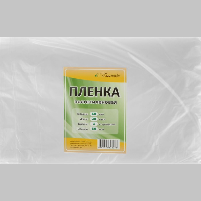 Плёнка полиэтиленовая, 20 х 3 м, толщина 60 мкм