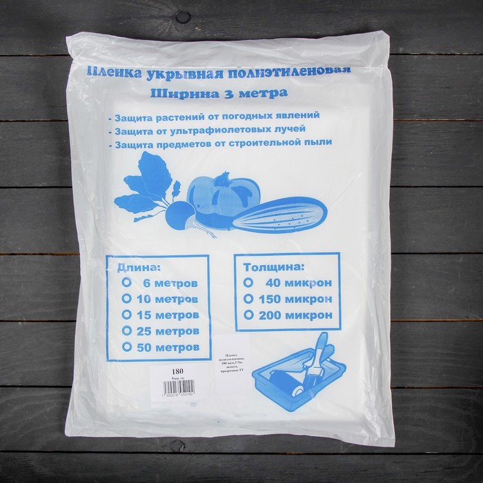 Плёнка полиэтиленовая, 5 х 3 м, толщина 180 мкм