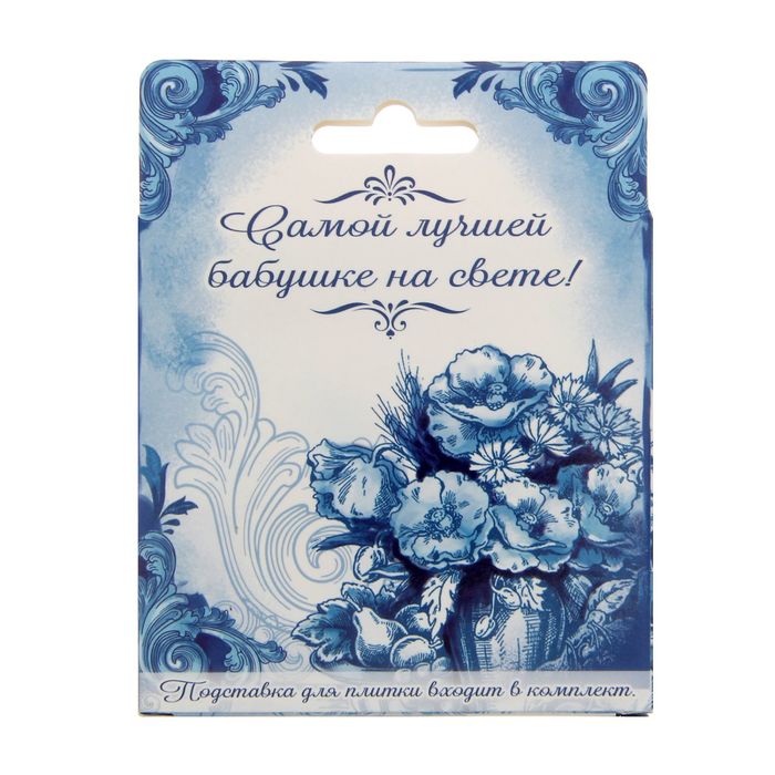 Керамическая плитка-открытка — это сувенир, созданный, чтобы вы могли сказать «спасибо» вашим близким и отметить их достоинства приятным комплиментом. Это прекрасное дополнение к подарку или самостоятельный презент. Плитка укомплектована пластиковой подставкой, благодаря ей открытку можно поставить на стол или полку, украсив интерьер.