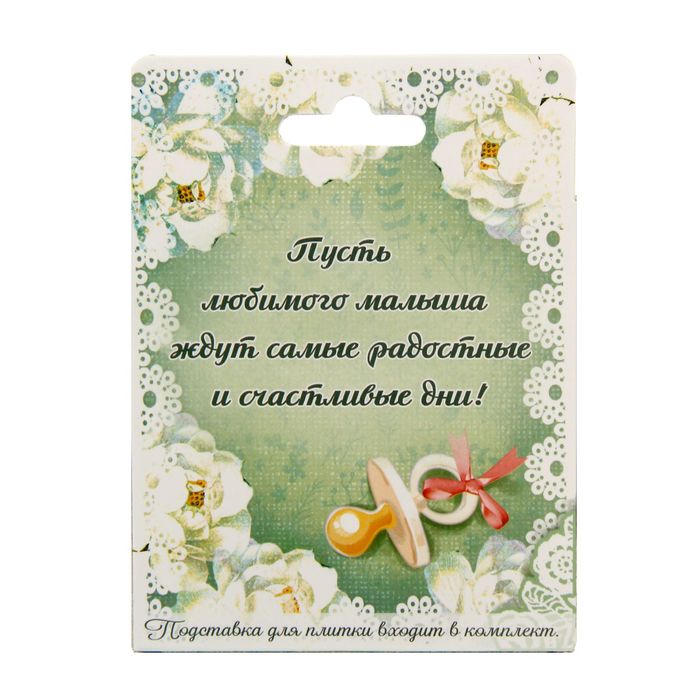 Керамическая плитка-открытка — это сувенир, созданный, чтобы вы могли сказать «спасибо» вашим близким и отметить их достоинства приятным комплиментом. Это прекрасное дополнение к подарку или самостоятельный презент. Плитка укомплектована пластиковой подставкой, благодаря ей открытку можно поставить на стол или полку, украсив интерьер.