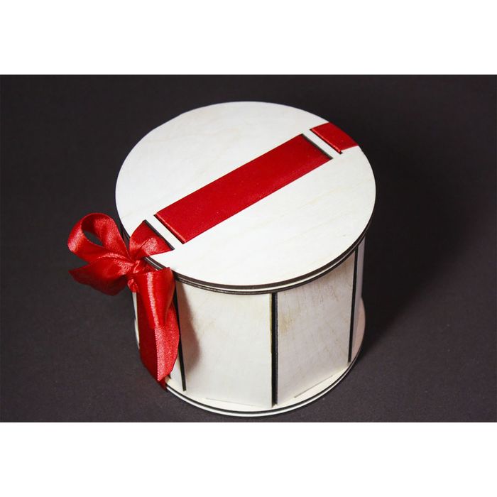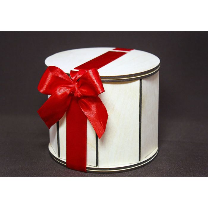 Подарочная коробка, тубус малый «Снежинки», 12,5 х 12,5 х 11 см, изготовлен из тонкой шлифованной берёзовой фанеры и оформлен красной лентой.