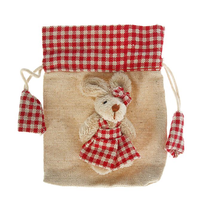 Подарочная сумочка "Зайка" бежевый, виды МИКС станет оригинальным оформлением вашего подарка. Положите в неё конфеты, игрушки, любые приятные мелочи и затяните концы. Обычные сладости, упакованные таким образом, превратятся в настоящий сюрприз.