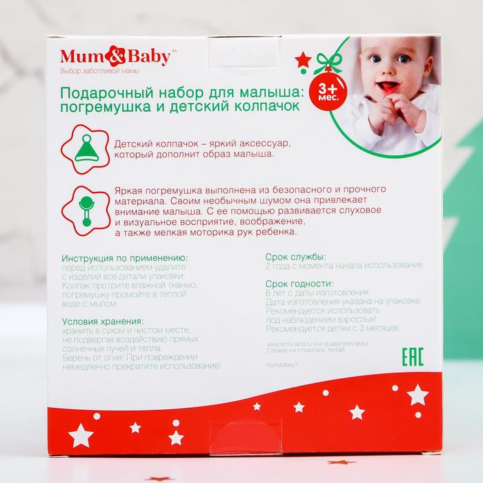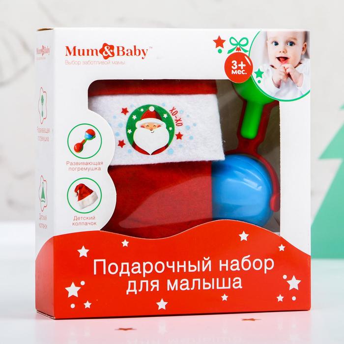 Подарочный набор детский «Хо-хо», 2 предмета: колпак новогодний + погремушка