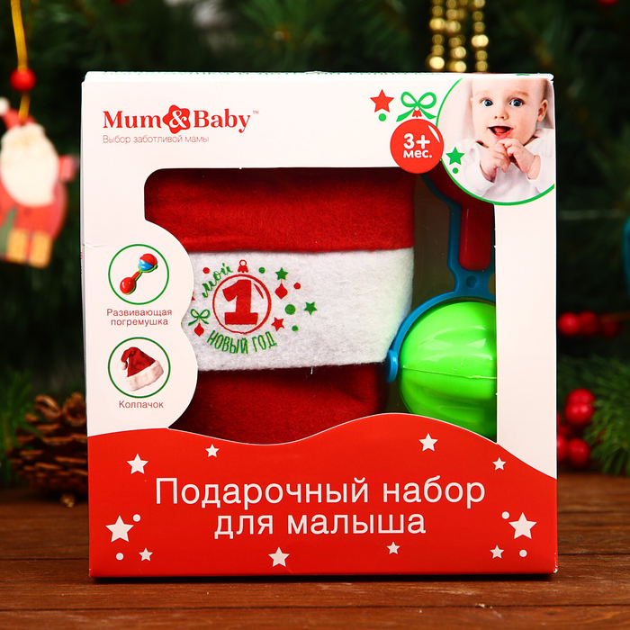 Подарочный набор детский «Мой первый Новый год», 2 предмета: колпак новогодний + погремушка