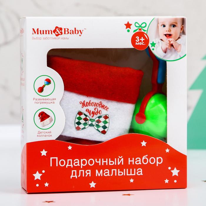 Подарочный набор детский «Новогоднее чудо», 2 предмета: колпак новогодний + погремушка