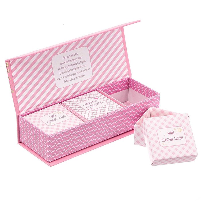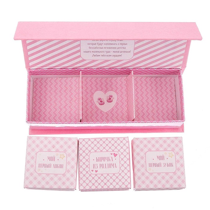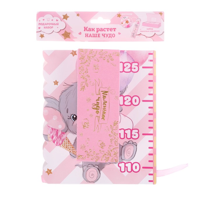 Подарочный набор "Как растет наше чудо": набор памятных коробочек, ростомер для девочки МИКС