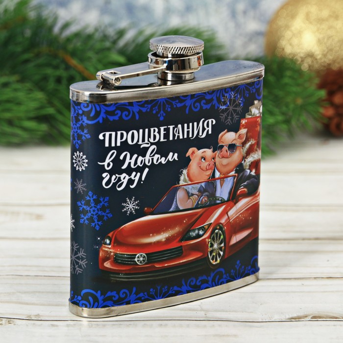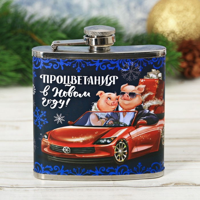 Подарочный набор "Процветания в Новом Году", фляжка 180 мл, стопки 2 шт., воронка