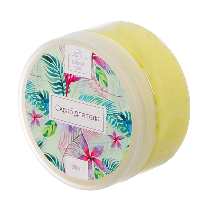 Подарочный набор "Пусть в твоей душе всегда цветут цветы!": скраб для тела с ароматом бананового пудинга, мочалка