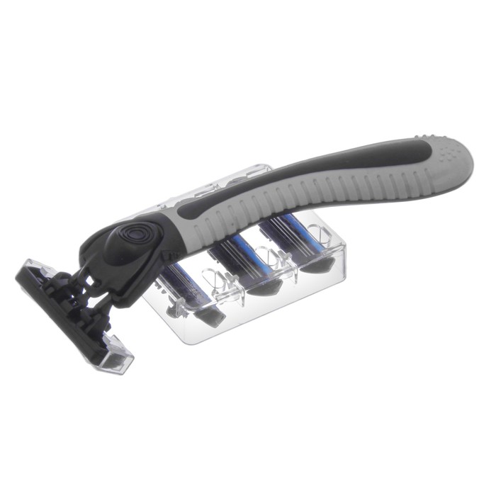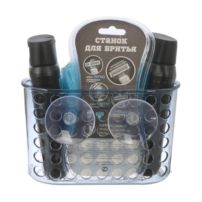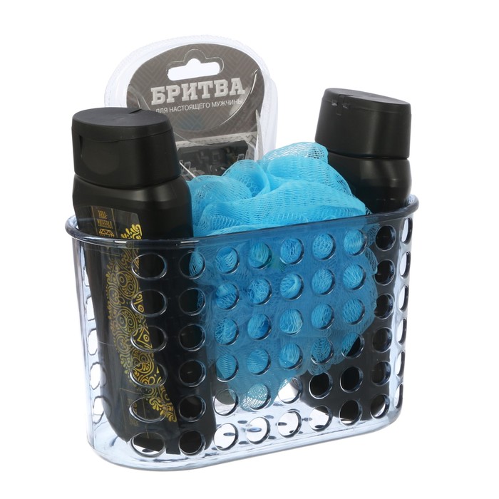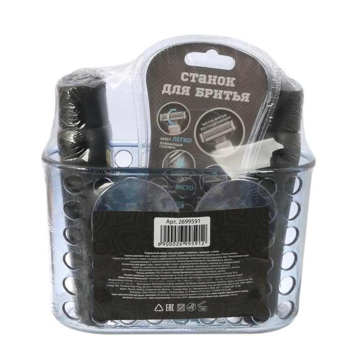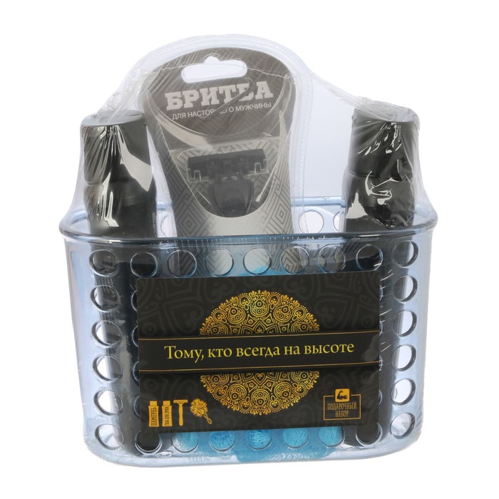 Подарочный набор "Тому, кто всегда на высоте": гель для душа, шампунь, бритва, мочалка в пластиковой подставке
