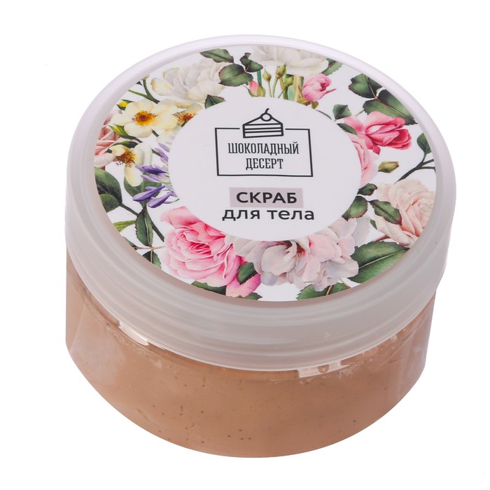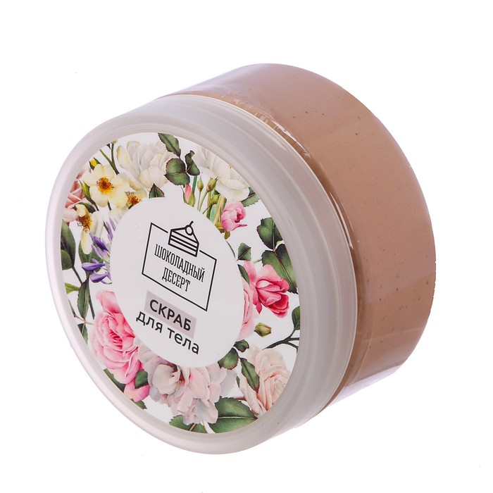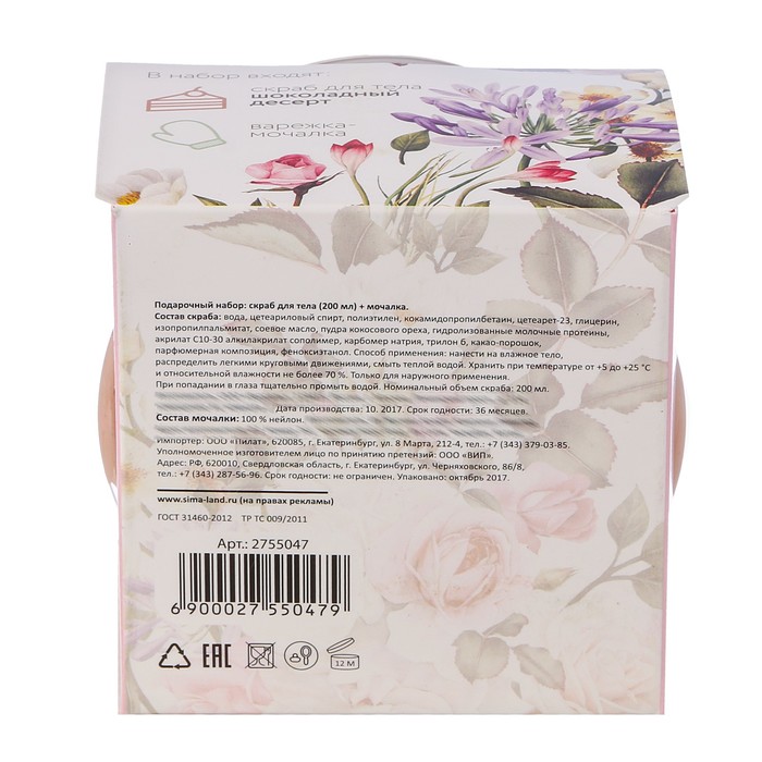 Подарочный набор "Все цветы этой весны для тебя": скраб для тела с ароматом шоколадного десерта, варежка-мочалка