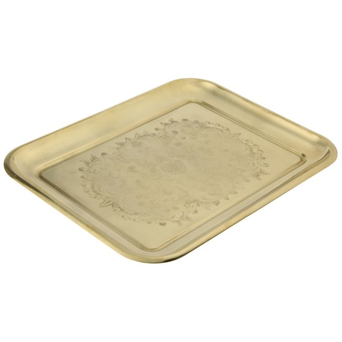 Необычайно красивый и изящный латунный поднос станет предметом гордости любой радушной хозяйки. Он украсит стол и добавит изысканности подаче готовых блюд.