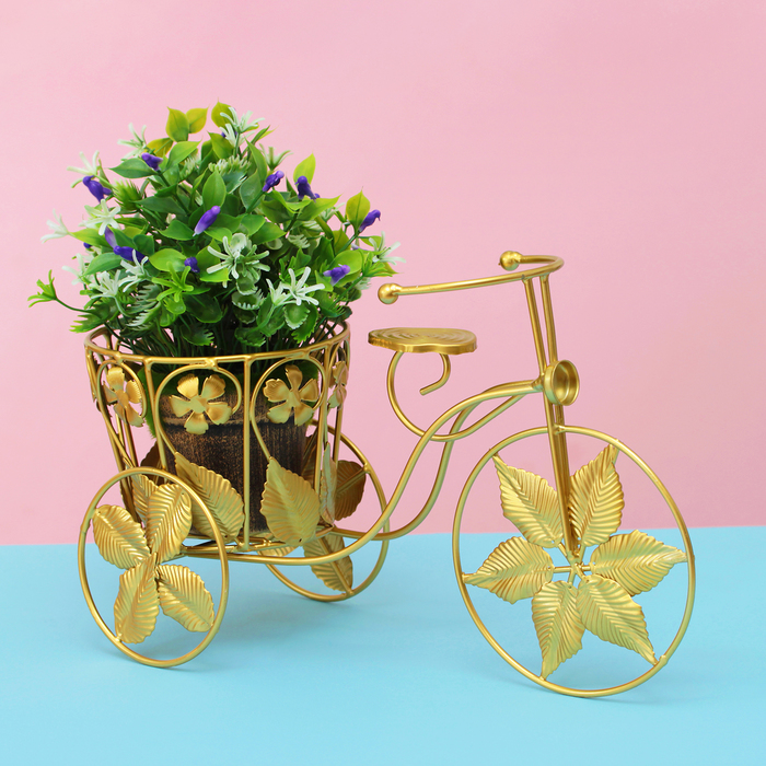 Подставка для цветов "Велосипед" корзинка с лепестками, золото d-13см*35*21 см