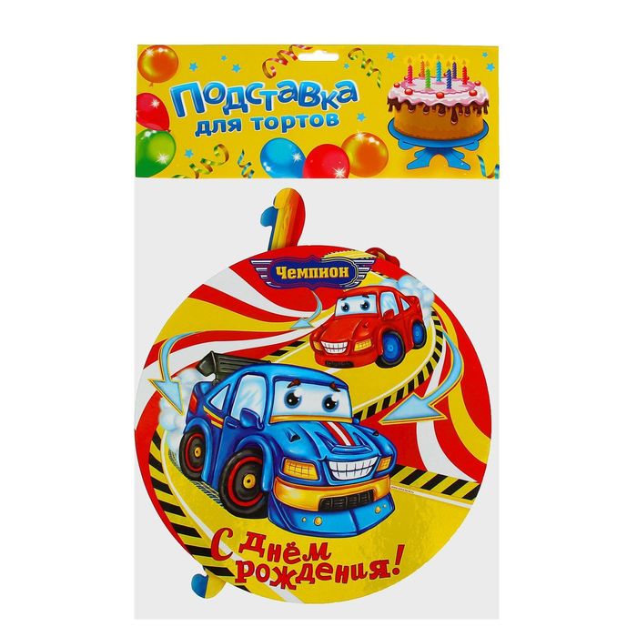 Подставка для пирожных "С Днём Рождения", тачки — отличный выбор для украшения сладкого стола. Красочная подставка из плотного картона хорошо подходит для красивой подачи маффинов, капкейков, пирожных, кексов, тортов, булочек, куличей, конфет или фруктов.