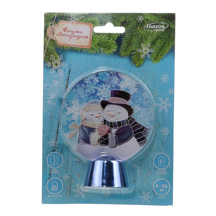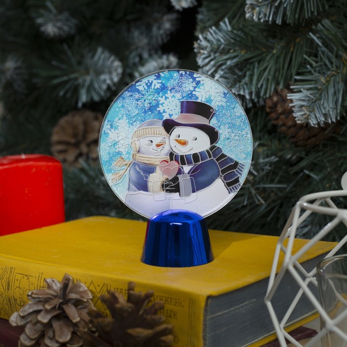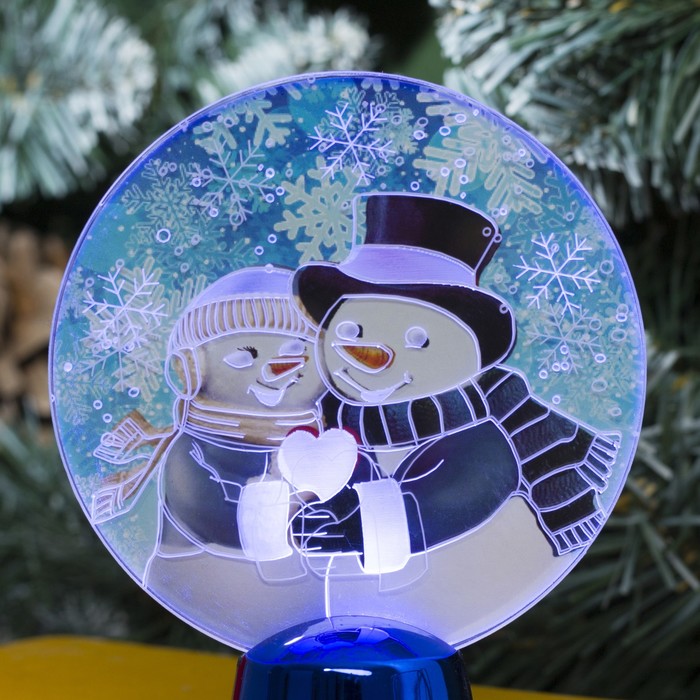 Подставка с динамикой "Влюбленные снеговики" (батарейки в комплекте), 11,5 см, 2 LED, БЕЛЫЙ