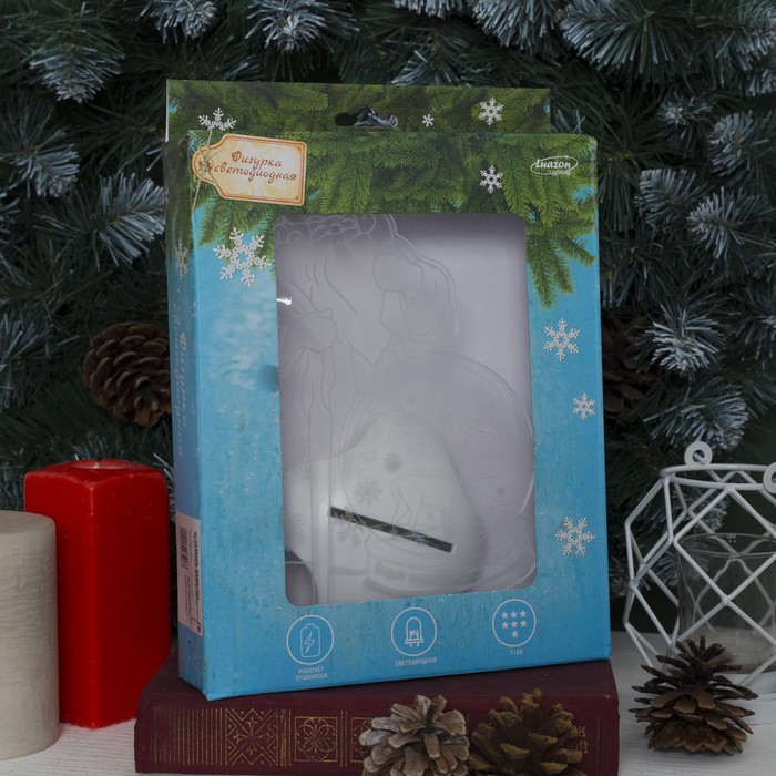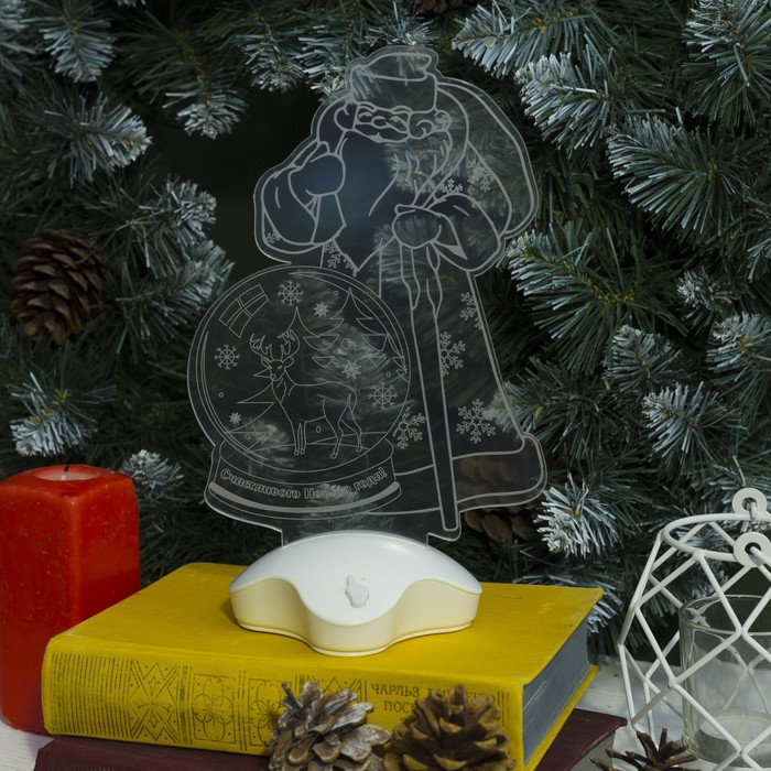 Подставка световая "Дед Мороз,Олень в шаре",25х15.5 см, 7 LED, 3хААА (не в компл.), БЕЛЫЙ