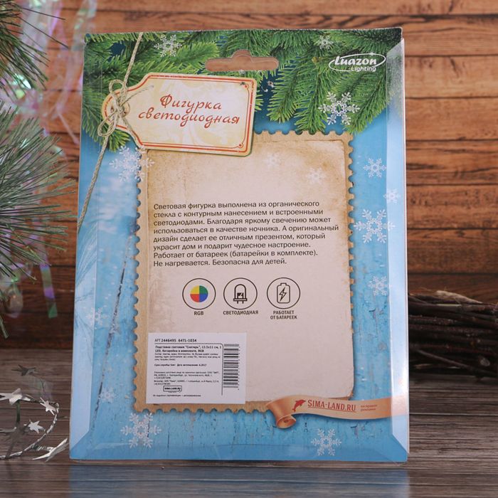 Изделие работает от батареек, может быть использовано в качестве ночника.