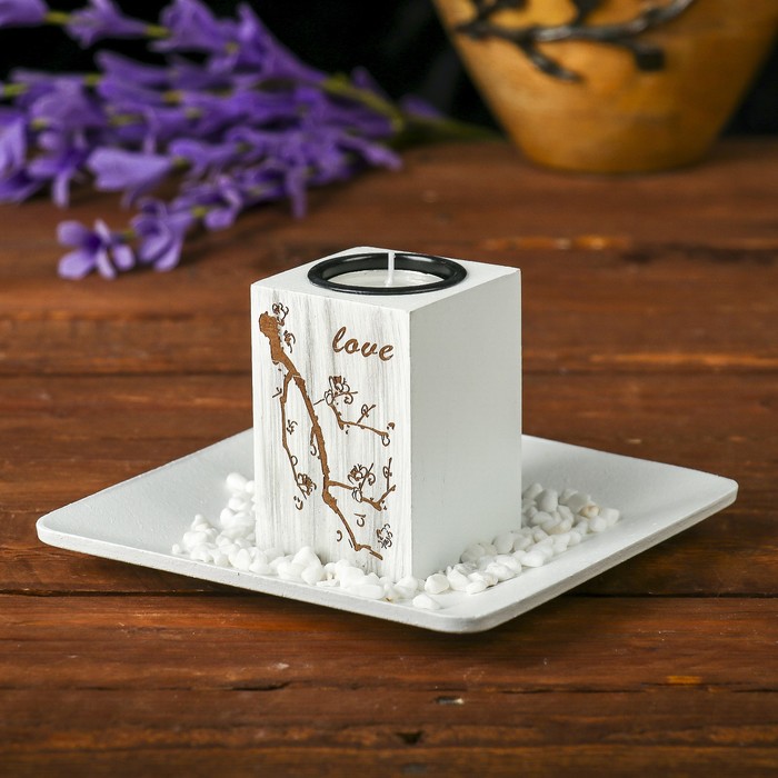 Подсвечник дерево 1 свеча "Веточка. Love" свеча в комплекте+камушки 9х15,3х15,3 см