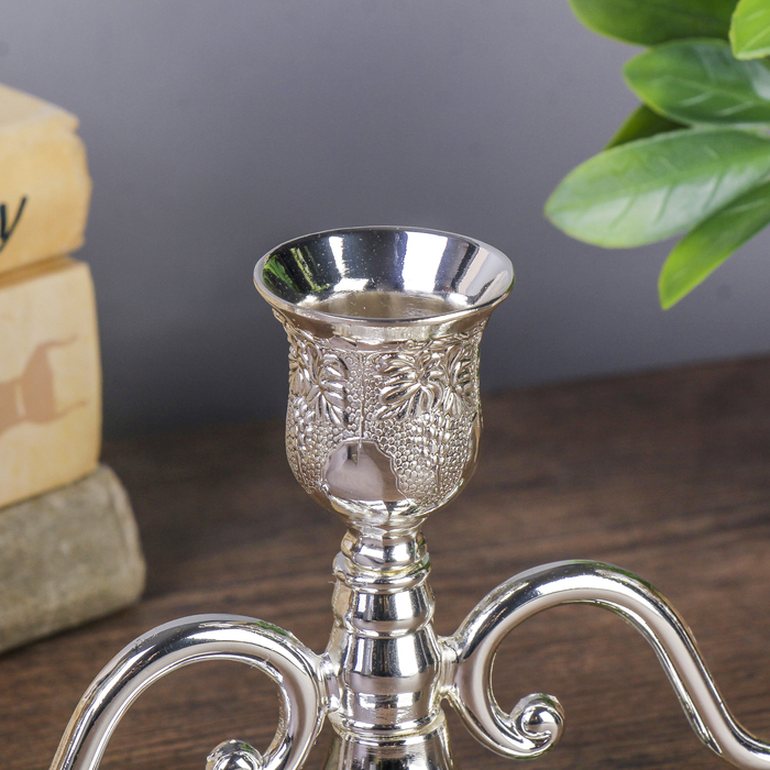 Подсвечник металл на 3 свечи "Резной лист" цвет серебро 21х20,5х8,5 см
