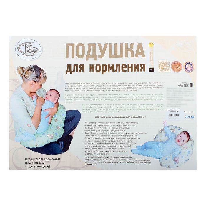 Подушка изготовлена из безопасных материалов. Товар прошёл все необходимые проверки и имеет сертификат соответствия ЕАС.