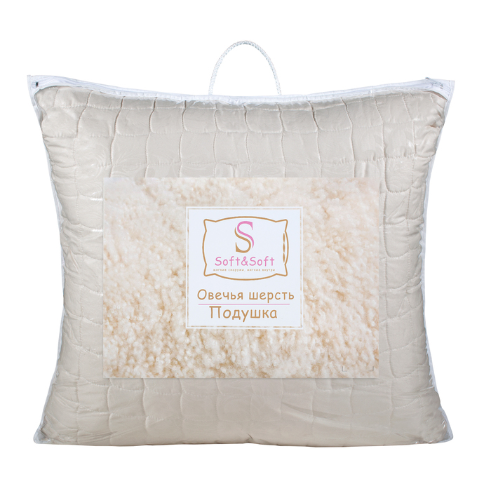 Подушка Soft&Soft Овечья шерсть 70х70, микроф. с тисн., овечий шерстипласт, иск. лебяжий пух 36636