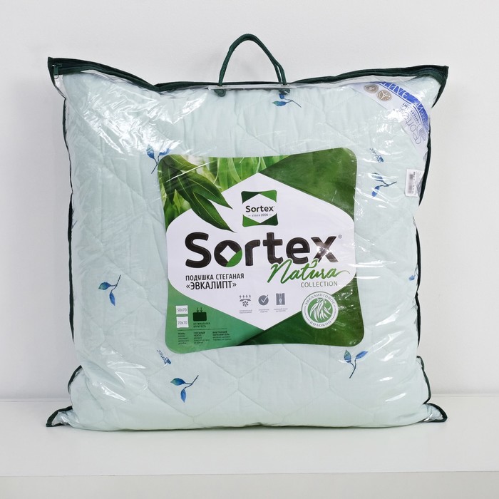 Подушка Сортекс Эвкалипт 70х70 см, файбер шарики, тик, хл 50%, п/э 50%