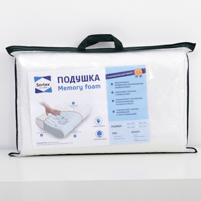 Подушка Сортекс Memory foam 67х47х12,5 трикотаж, трёхслойная сетка air-mesh