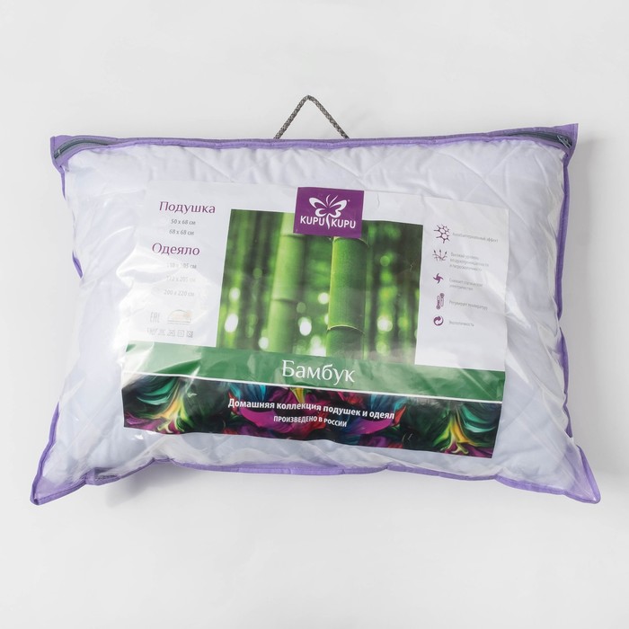 Подушка высокая 50х68 см белый, бамбук/силиконизированное волокно, микрофибра, пэ100%