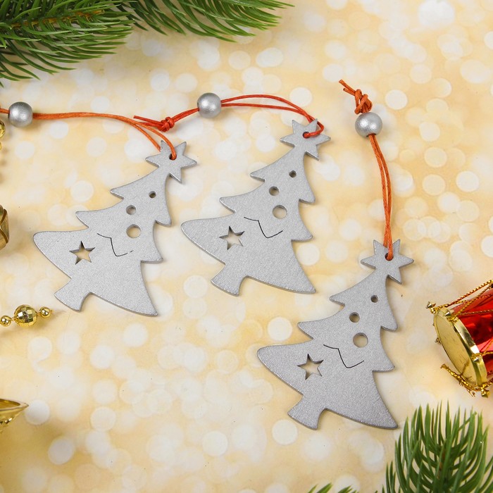 Подвеска новогодняя "Серебряные ёлочки", набор 3 шт.