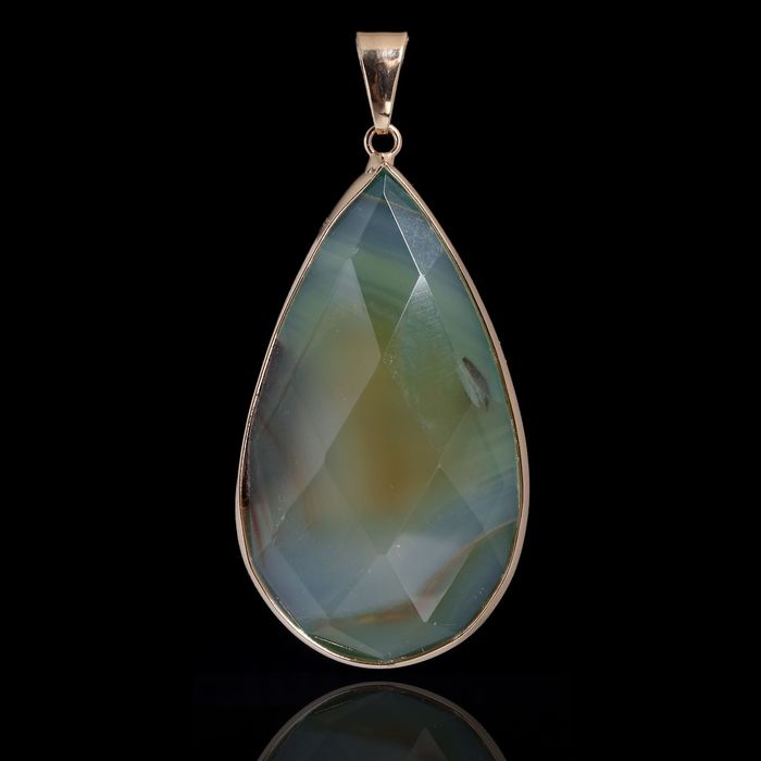 Подвеска в золоте "Агат зелёный" с разводами, форма МИКС