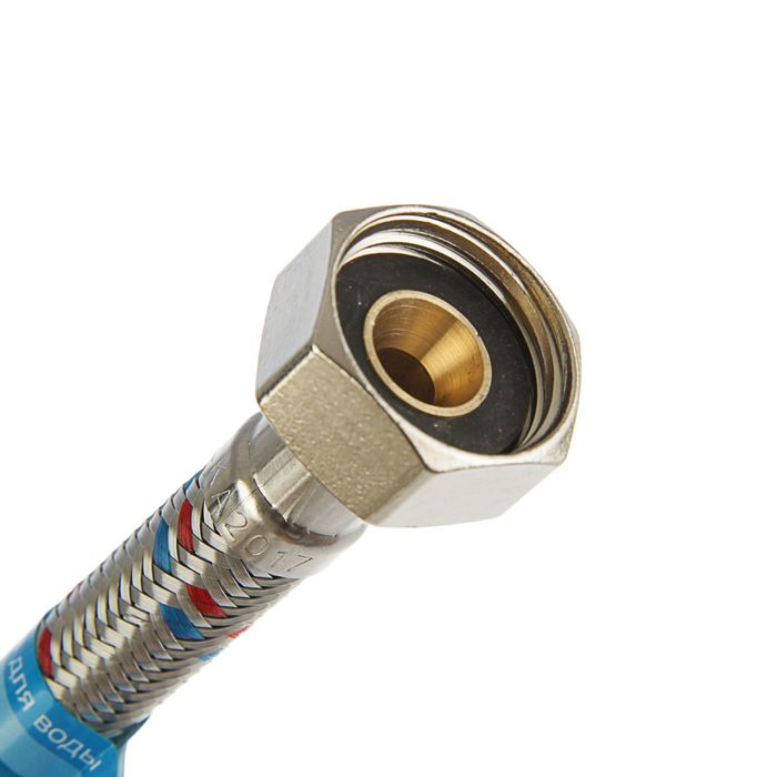 Гайки на концах позволят удлинить шланг до нужных размеров, а штуцер поможет присоединить трубку к смесителю.