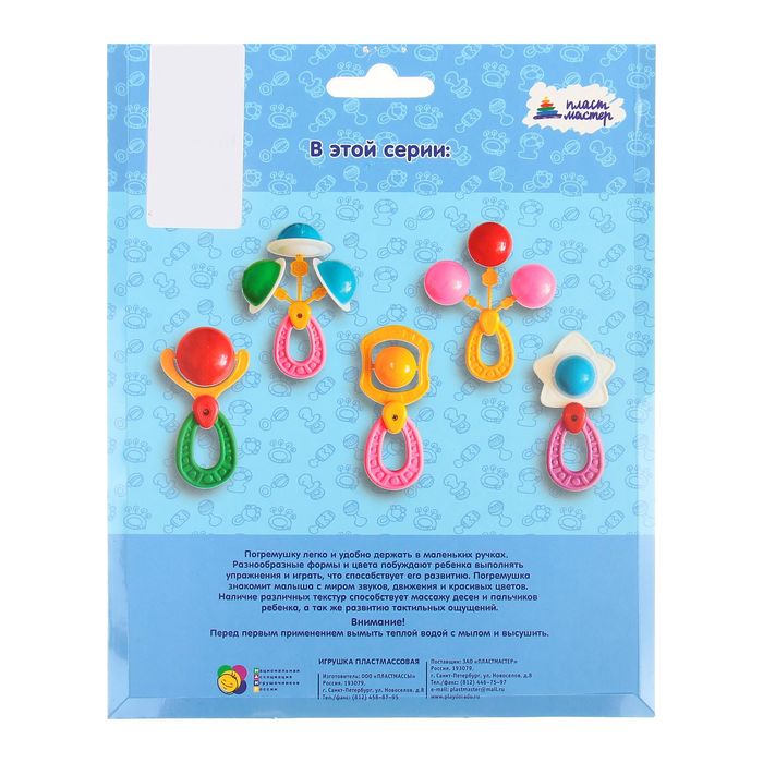 Погремушка — это первая игрушка малыша. Красочный предмет знакомит новорождённого с окружающим миром. Он развивает у ребёнка пространственное мышление, а также слуховое, зрительное и тактильное восприятие.