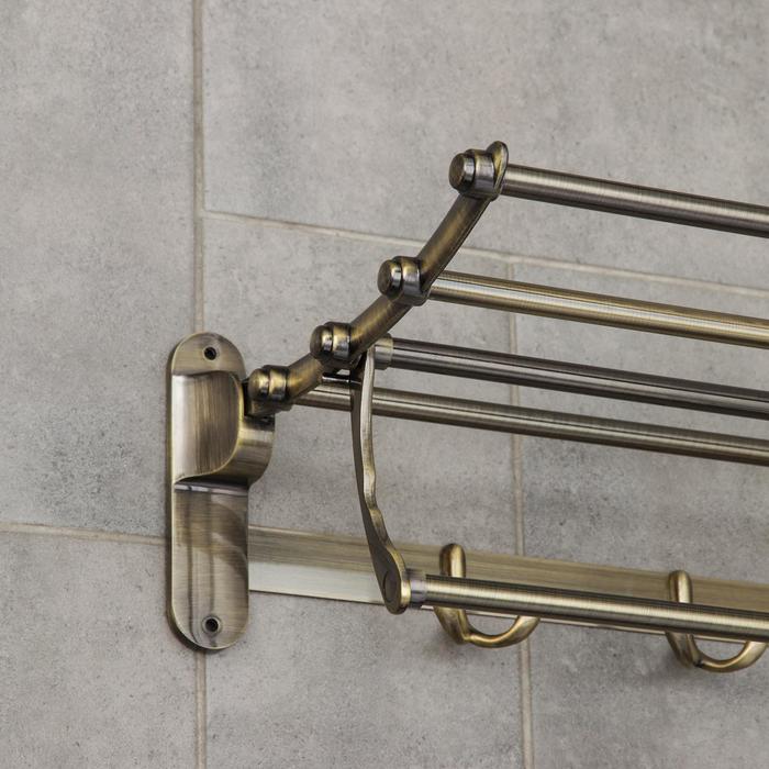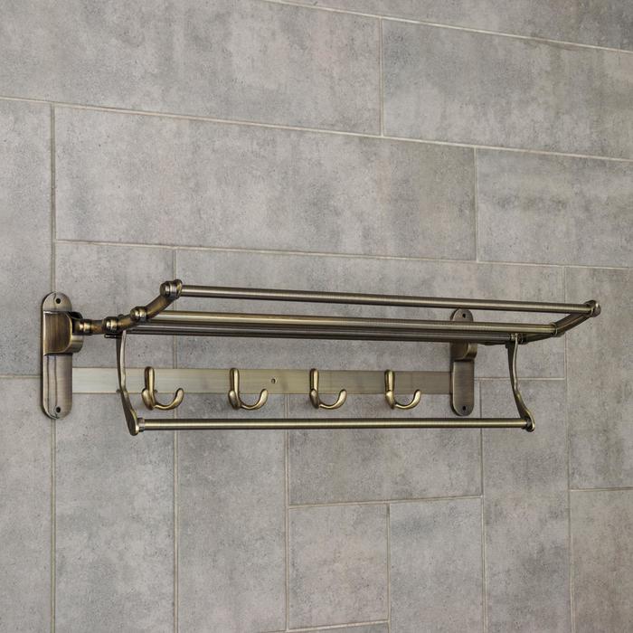 Полка откидная с держателем полотенец, 4 двойных крючка, цвет бронза