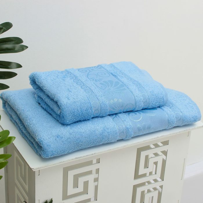 Полотенце махровое Opriory жаккард 50*90 голубой Бамбук 100%, 500гр/м.