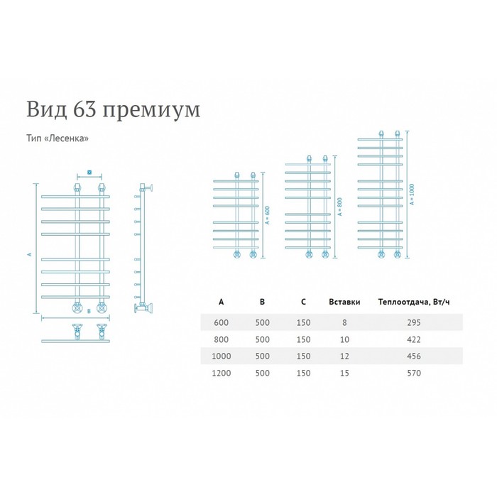 Полотенцесушитель «Маргроид, вид 63 премиум», водяной, лесенка, 800 х 150 х 500 мм