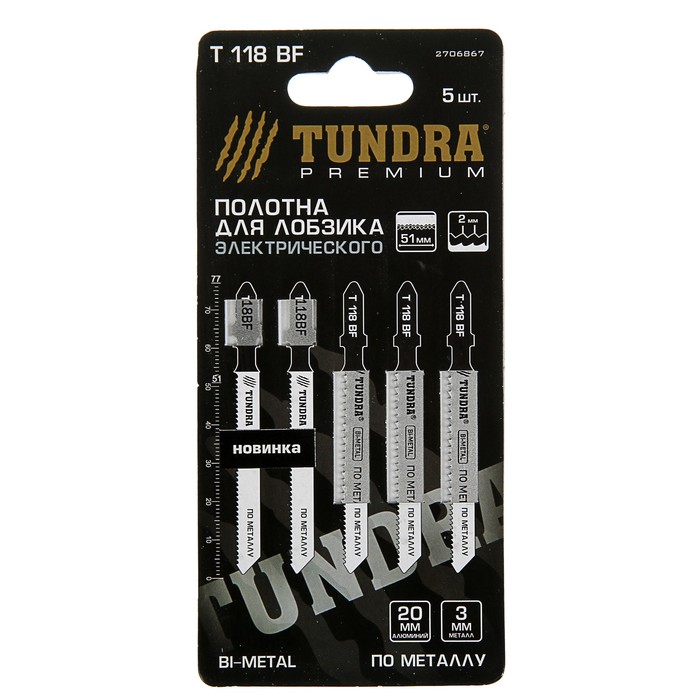 Полотна для электролобзика TUNDRA premium, по дереву, 5 шт, BIMETAL, 51 x 2мм T118BF