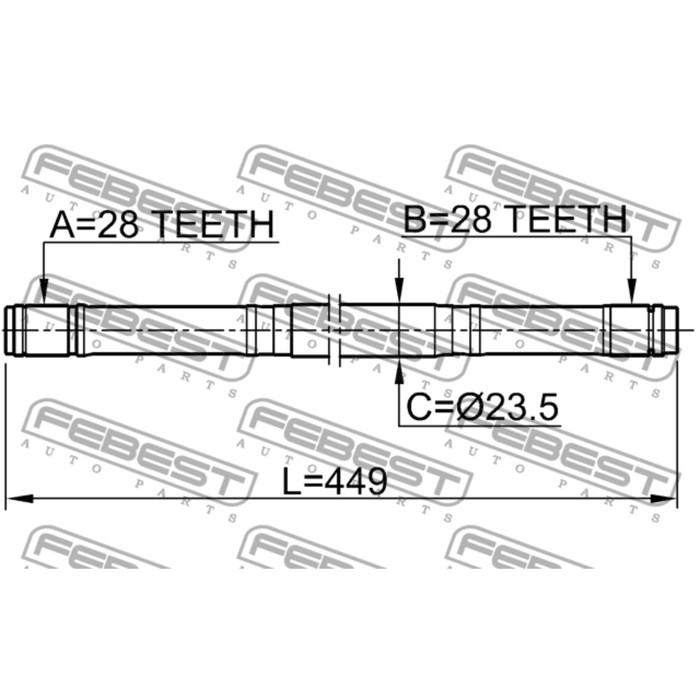 Полуось правая 28x449x28 febest 0312-ek3rh