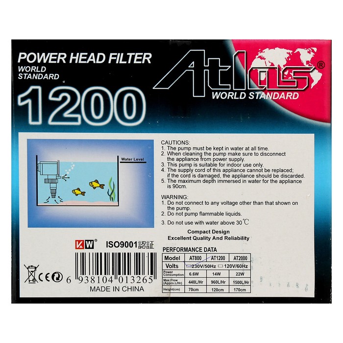 Помпа водяная KW Atlas AT-1200, 14 Вт, 960 л/ч, высота 1.2 м, с регулятором работает тихо и надёжно. Детали и материалы, из которых собрана эта модель, безопасны для водной флоры и фауны. Обитатели вашего аквариума вздохнут спокойно — качественный компрессор сделан буквально для этого.